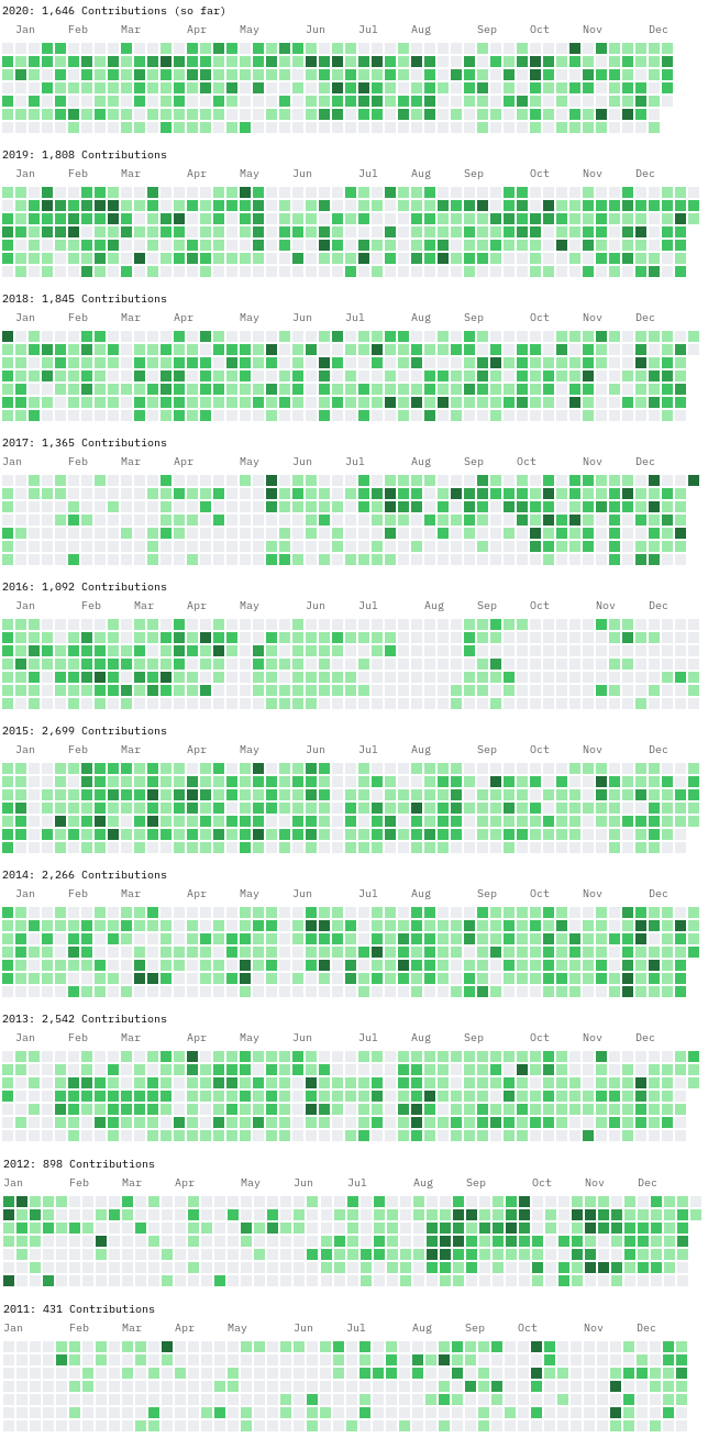 A intervalles réguliers, j'écris un bilan de mes années passées en tant que développeur de logiciels libres. J'ai commencé fin 2010 par créer un petit projet de réseau social distribué. Cela m'a amené ensuite à fonder une startup dont le produit principal était libre. Après quelques déboires, j'ai dû recommencer de zéro. J'ai choisi un sujet plus facile et suis parti sur la réalisation d'un outil très ciblé : un logiciel de gestion de projet pour l'industrie du film d'animation. Cette nouvelle histoire est en train prendre une bonne tournure, c'est donc toujours mon activité principale.